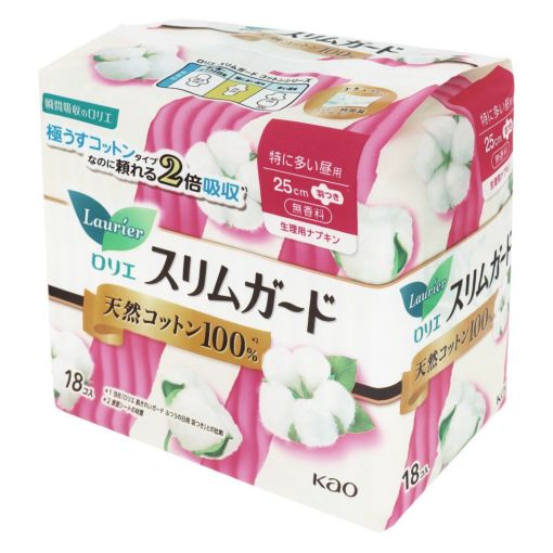 ロリエ スリムガード天然コットン100%特に多い昼用羽つき 18個入