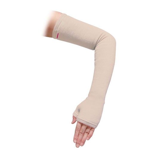 肌ざわりのよいタオル地素材のスリーブが手の甲や腕を保護します。