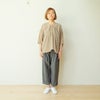 素材としては伸び縮みしないインド綿ですが、シャーリング加工(ゴムを活用した伸縮性のあるデザイン)で、伸縮性を実現。楽にお洋服を着ることが出来ます。