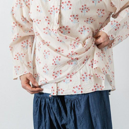 熟練の職人さんの手作業により作り上げられたテキスタイルは、かすれやにじみが味わいとなり、ぬくもりと愛おしさにあふれた一枚に。また、洗いにかけられた布は天日干しにより乾燥することで、鮮やかな発色とやわらかな肌ざわりに仕上がっております。