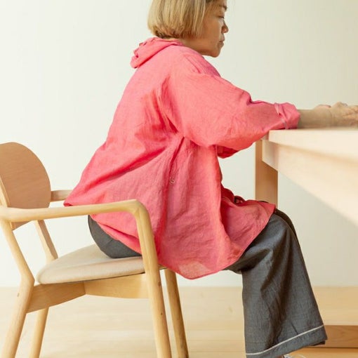 麻痺のある方でも肘と肩を通しやすくするため、広めでゆったりしたデザインになっています。