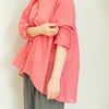 素材としては伸び縮みしないインド綿ですが、シャーリング加工(ゴムを活用した伸縮性のあるデザイン)で、伸縮性を実現。楽にお洋服を着ることが出来ます。