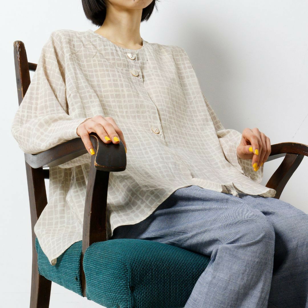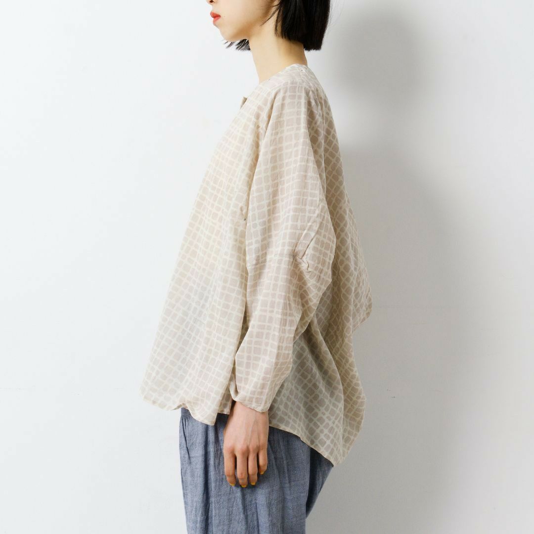 軽やかな天然素材で仕立てたキャメルブラウスは、やさしい肌触りとふんわりとしたシルエットが魅力の一着。動くたびに軽やかな表情を見せるフォルムが、ナチュラルなこなれ感を演出します。