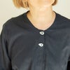 ころんと可愛らしい舟形ボタンは、片手でも簡単に留め外しができる仕様。シンプルながら、ディテールまでこだわったデザインが、さりげなく個性を引き立てます。