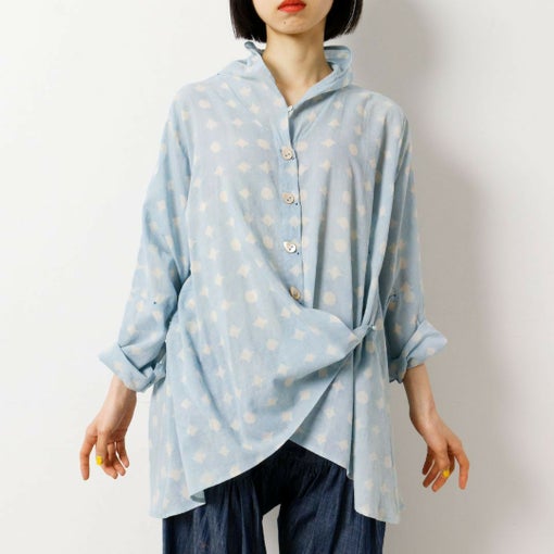 敏感肌の方にもやさしい、軽やかなインド産の天然繊維を使用したブラウス。ふんわり心地よい肌触りと、通気性の良さで、一日中快適に過ごせます。