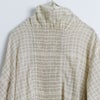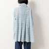 くしゅっとしたボリューム襟がほどよい抜け感を演出し、さっと手に取って羽織りやすいデザイン。背中には華やかで伸縮性のある大きなシャーリングをあしらい、動きやすさと女性らしいシルエットを両立しました。後ろ丈はボタンで調節でき、裾はサイドで留めてカシュクール風にアレンジすることも可能。気分やコーディネート、ご自身の体形に合わせて、自由にスタイルを楽しめます。