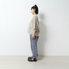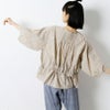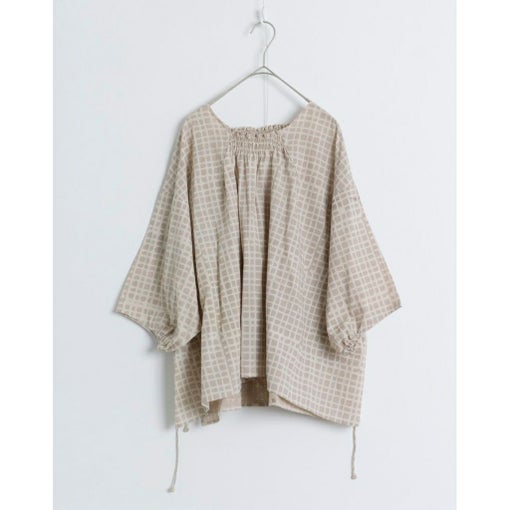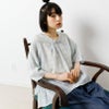 前かがみの姿勢になっても胸元が開きすぎず、どんな動作も気にせず自然に過ごせるデザインです。アームホールにもシャーリングを取り入れ、袖を通しやすい工夫も。ゆったりとしたシルエットが生み出す空気感が、リラックスした着こなしを叶えます。