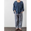 前かがみの姿勢になっても胸元が開きすぎず、どんな動作も気にせず自然に過ごせるデザインです。アームホールにもシャーリングを取り入れ、袖を通しやすい工夫も。ゆったりとしたシルエットが生み出す空気感が、リラックスした着こなしを叶えます。