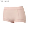 ウエスト部分、足ぐり部分はゴムを使わず、伸縮性のある生地(パワーネット)を挟み込むことで、ソフトな肌あたりを実現。