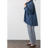 くしゅっとしたボリューム襟がほどよい抜け感を演出し、さっと手に取って羽織りやすいデザイン。背中には華やかで伸縮性のある大きなシャーリングをあしらい、動きやすさと女性らしいシルエットを両立しました。後ろ丈はボタンで調節でき、裾はサイドで留めてカシュクール風にアレンジすることも可能。気分やコーディネート、ご自身の体形に合わせて、自由にスタイルを楽しめます。