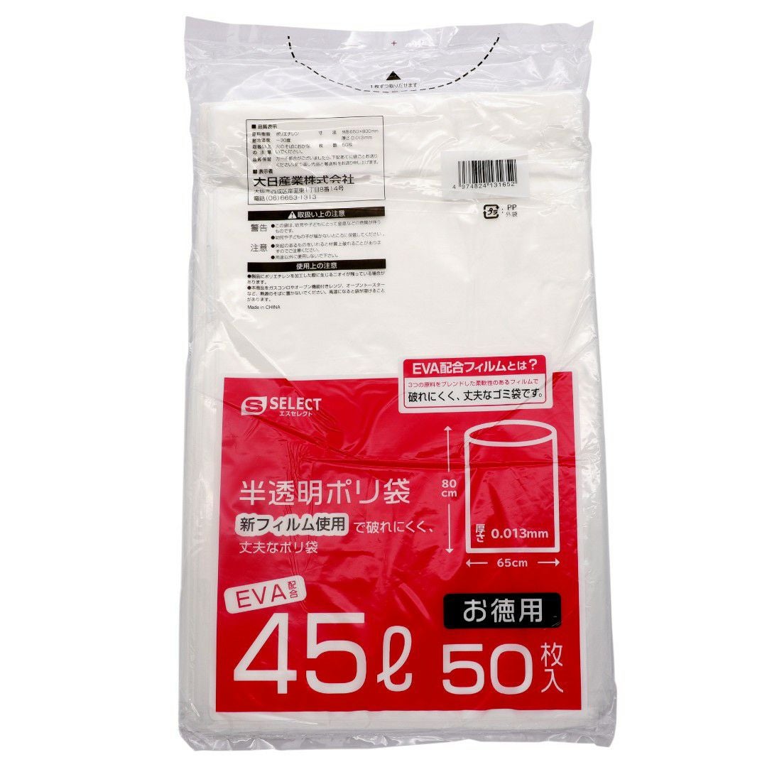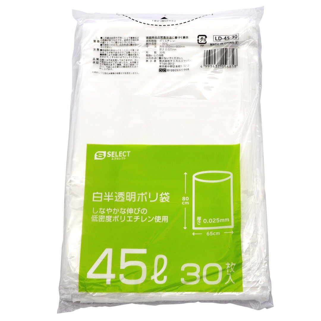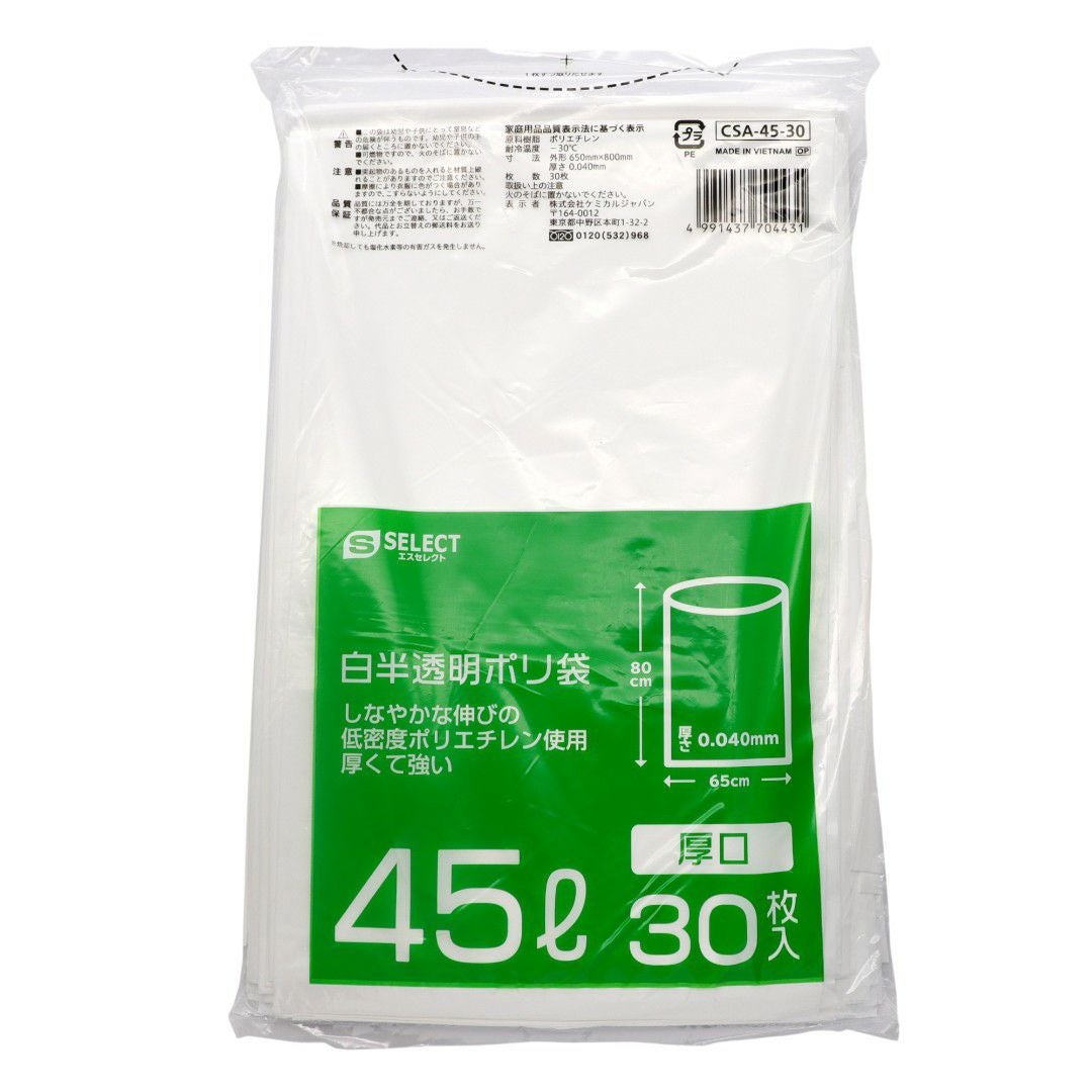 エスセレクト 白半透明ポリ袋 厚口 45L