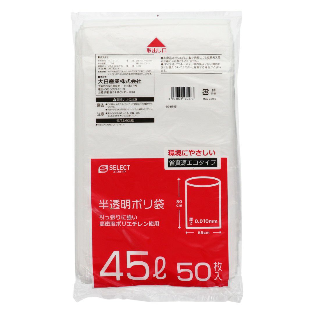 エスセレクト 省資源半透明ポリ袋 お得用45L 50枚