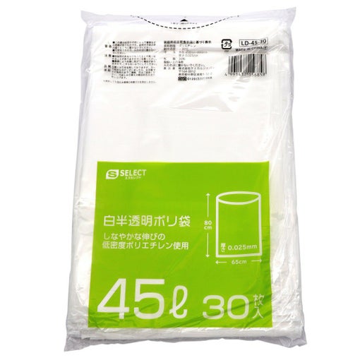 エスセレクト 白半透明ポリ袋 45L