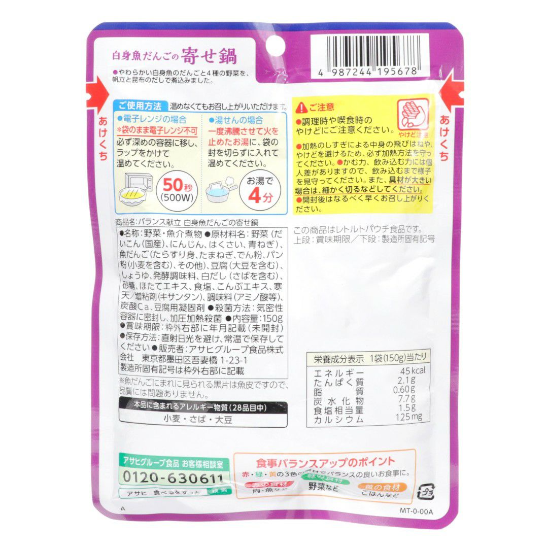 バランス献立 具材を楽しむ 白身魚だんごの寄せ鍋 150g