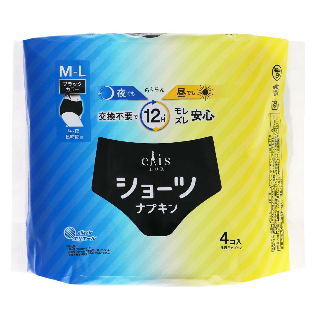 エリス ショーツM~L昼・夜長時間用ブラックカラー4枚