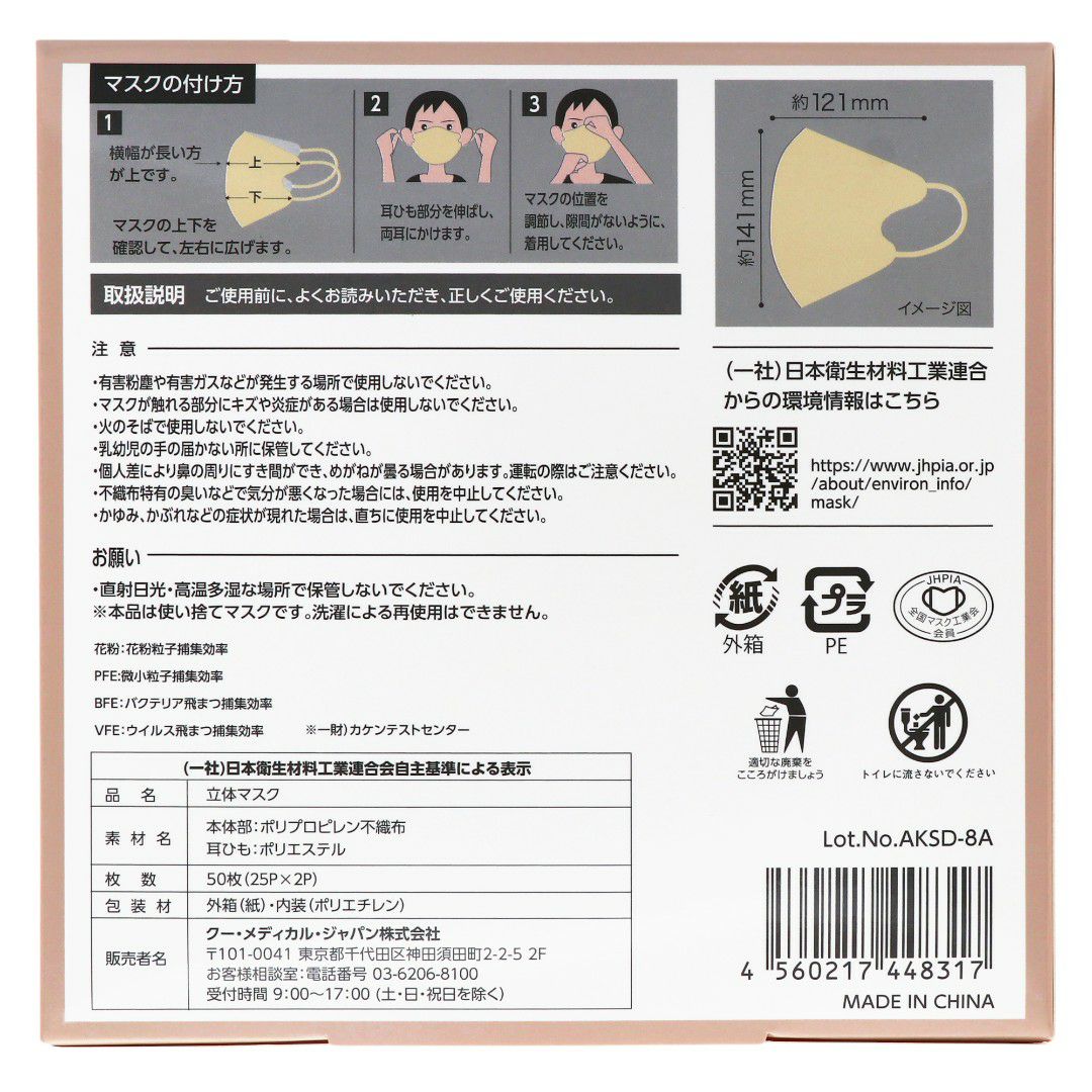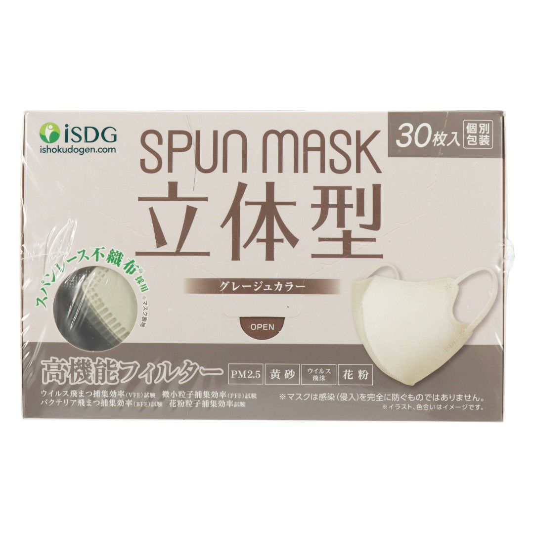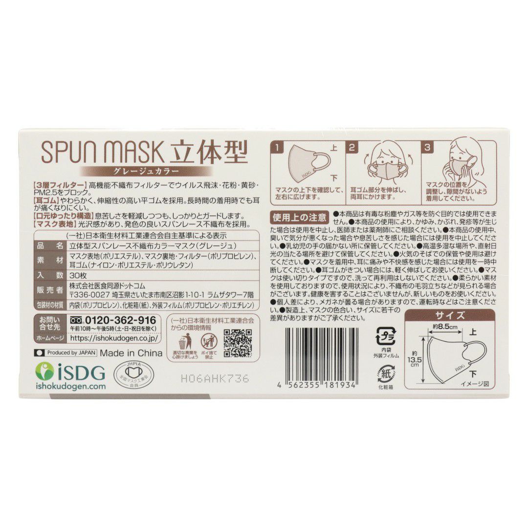 スパンレース 不織布カラーマスク 立体型 グレージュ 30枚入