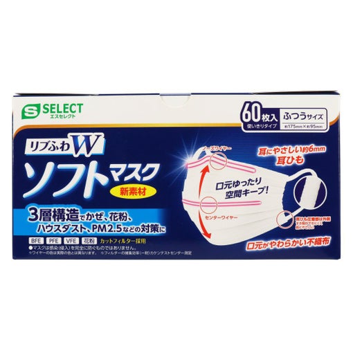 しっかりとした3層構造。ノーズワイヤーとセンターワイヤーを採用し、鼻からアゴまで大きく広がって、口元に空気ができ、呼吸がしやすいです。耳が痛くなりにくい幅広ゴムを採用しています。