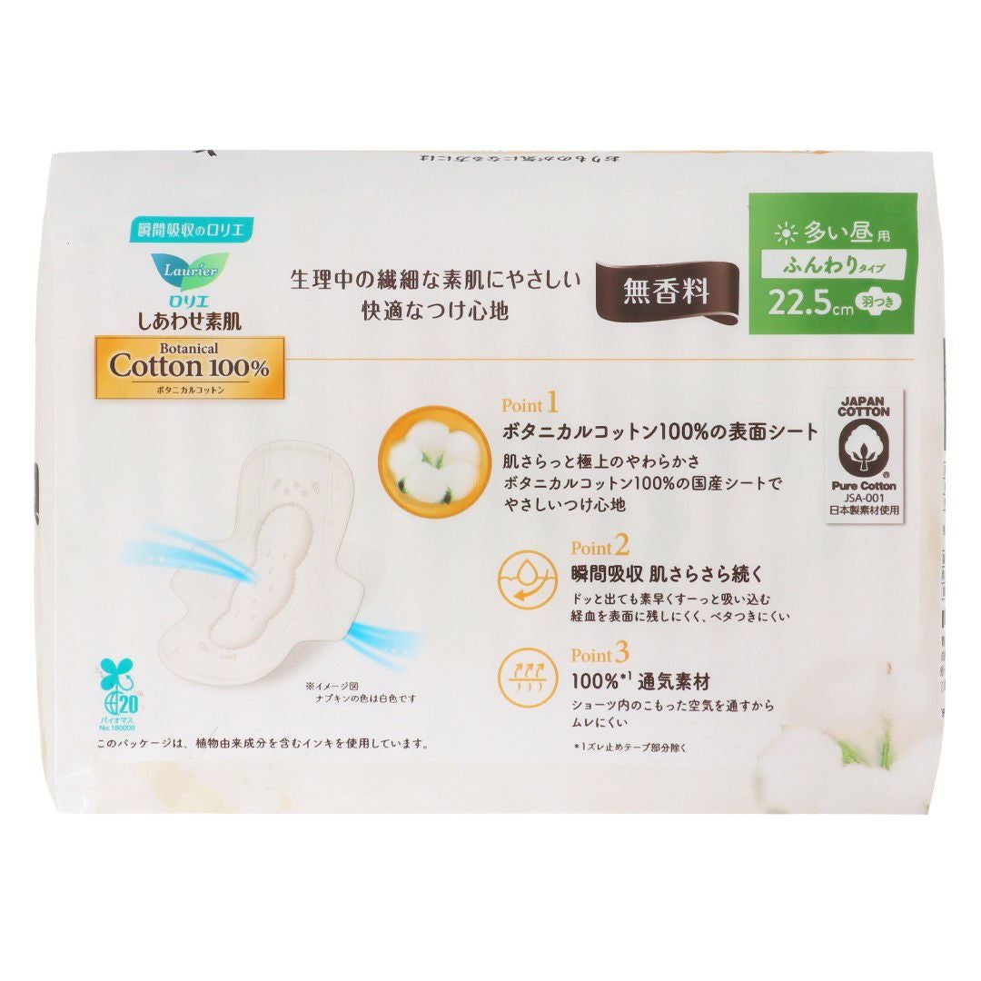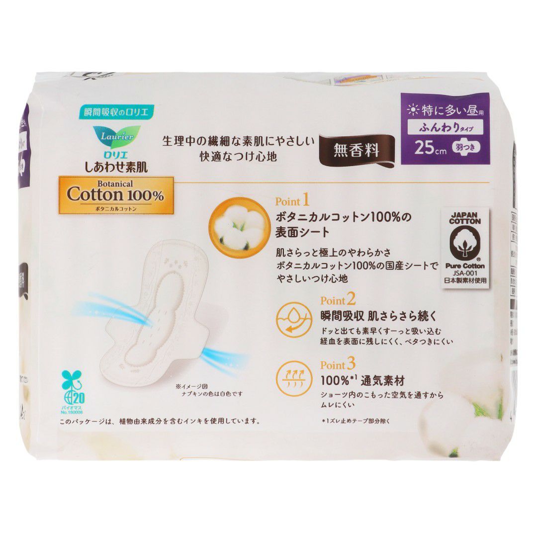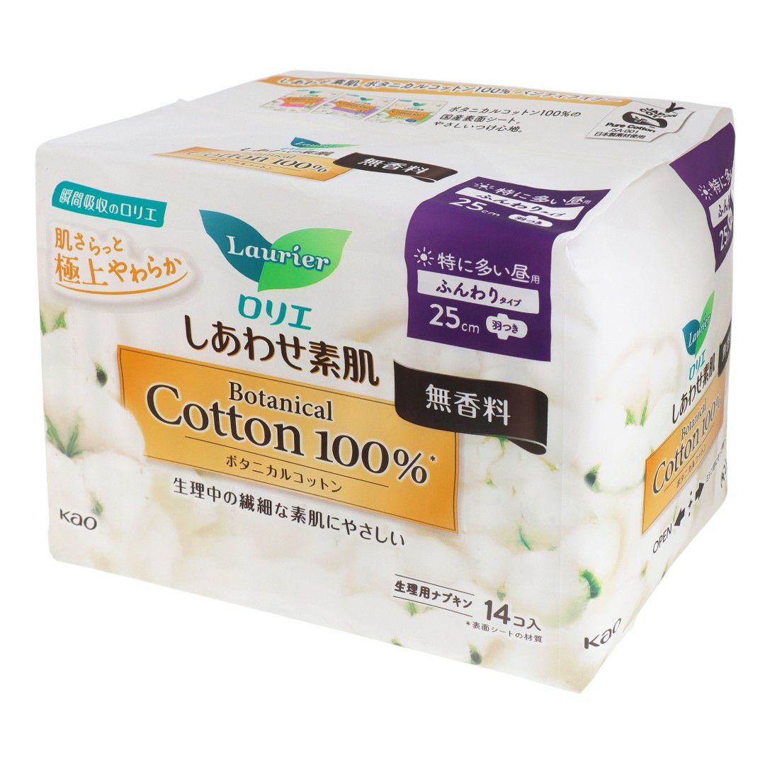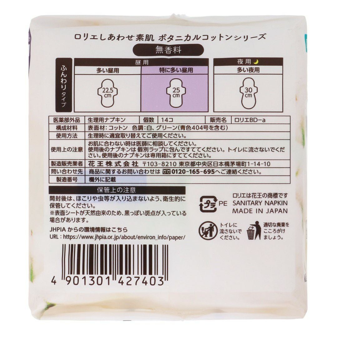 ロリエ しあわせ素肌 BOTANICAL COTTON100% 無香特に多い昼用羽つき14コ