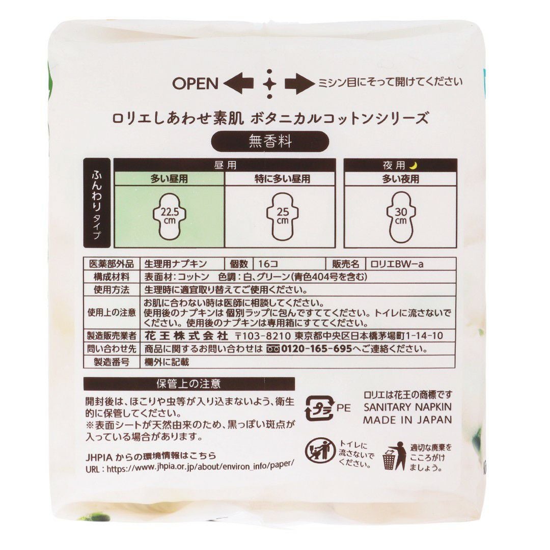 ロリエ しあわせ素肌 BOTANICAL COTTON100% 無香多い昼羽つき16コ