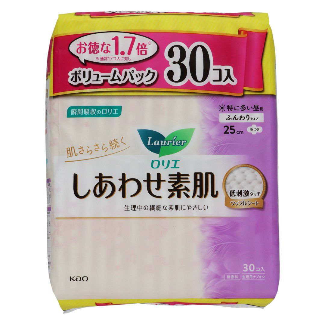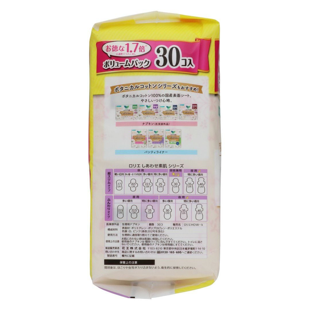 ロリエしあわせ素肌 ボリュームパック 特に多い昼用羽つき 30コ入