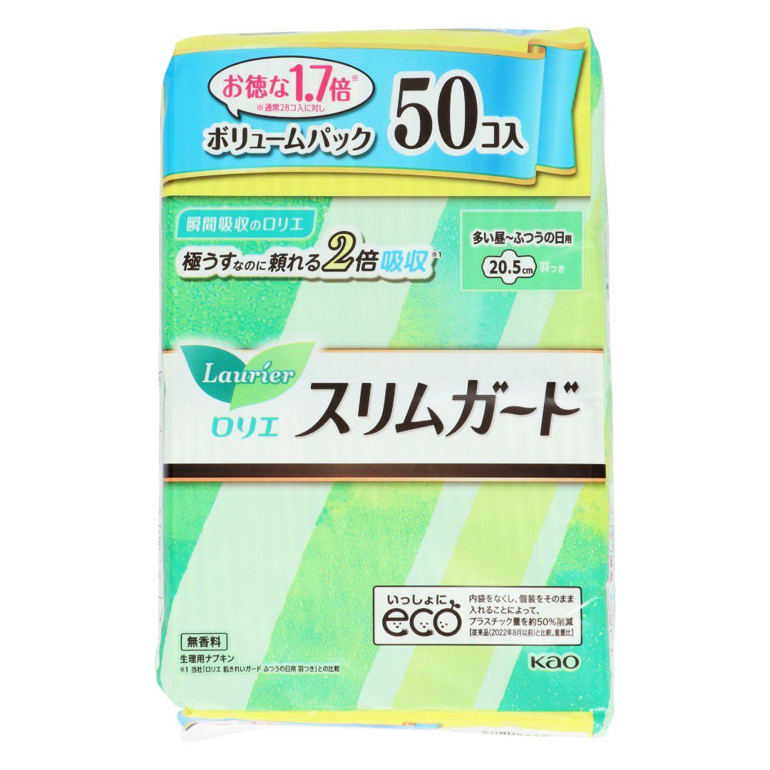 ロリエ スリムガード 多い昼~ふつうの日用羽付 50個