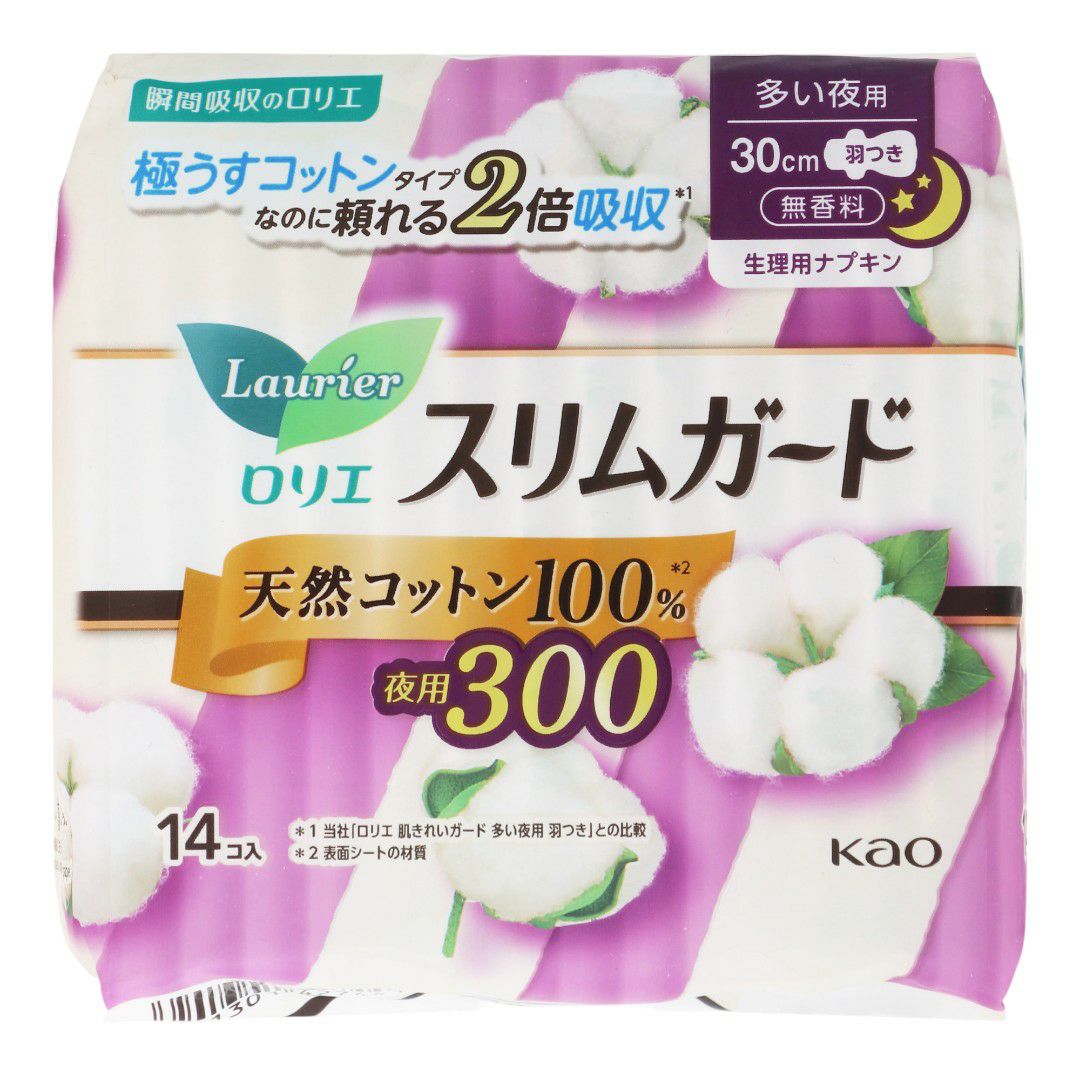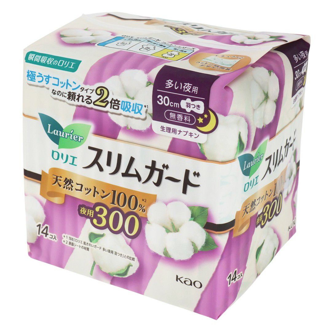 ロリエスリムガード天然コットン100%多い夜用300羽つき