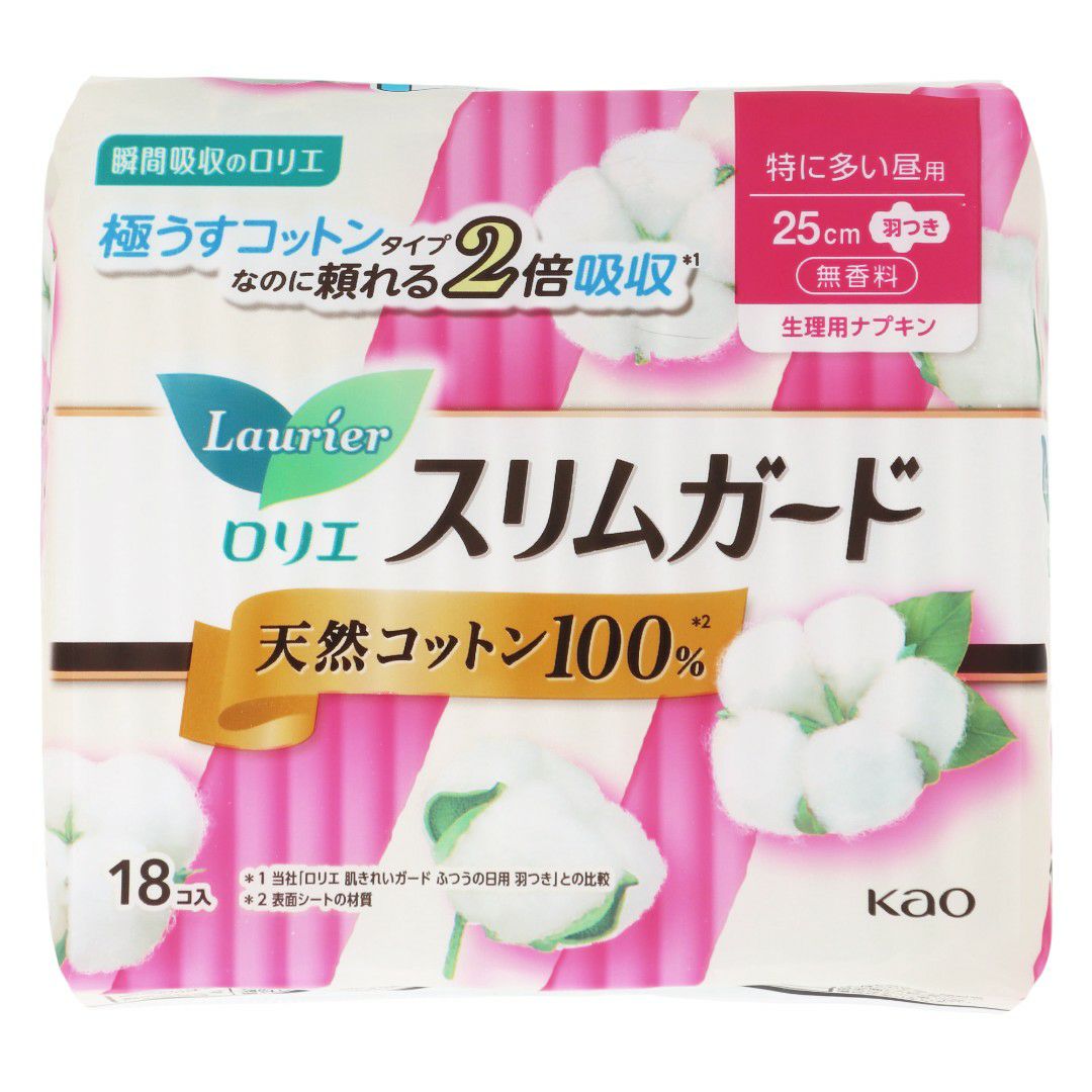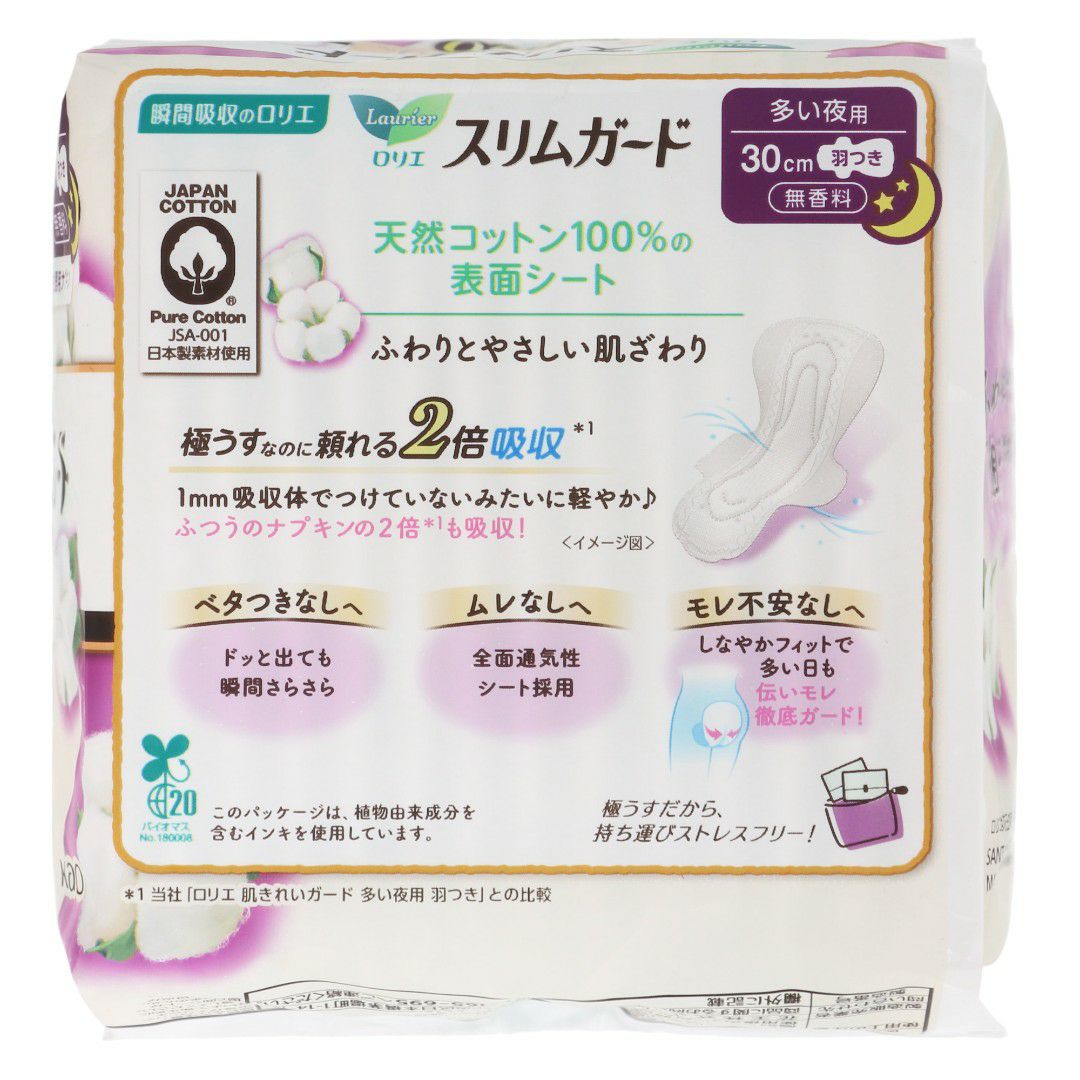 ロリエスリムガード天然コットン100%特に多い昼用羽つき