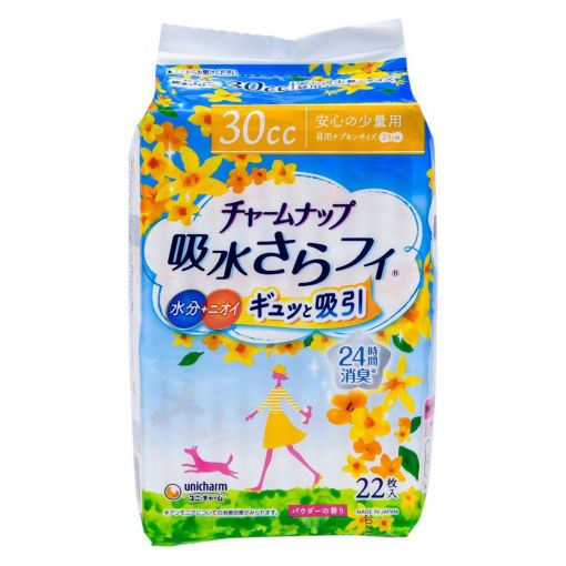 普段のナプキンサイズで水分・ニオイまでギュッと吸引!瞬間さらっと吸収体で表面に残る間もなく、お肌サラサラ!消臭ポリマーと吸着カプセルのダブルニオイ吸着システム!だから尿もれを気にせず、普段通り過ごせます。