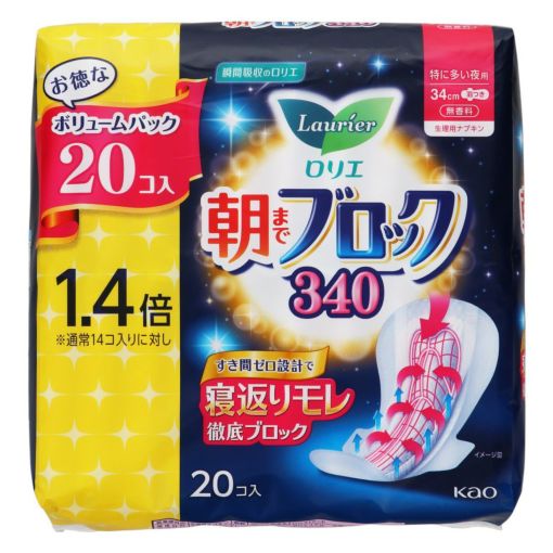 お徳な大容量タイプ。「すき間ゼロ設計」で、ナプキンがおしりの形にあわせて変形し、寝返りモレ徹底ブロック!不安なすき間を作らず、寝返りしてもしっかり吸収♪「3倍吸乾シート*1」がムレやベタつきの原因となる経血を引き込み、表面はいつもさらさら。(医薬部外品)*1表面液戻り量に関して、当社「ロリエ 肌きれいガード 多い夜用 羽つき」との比較