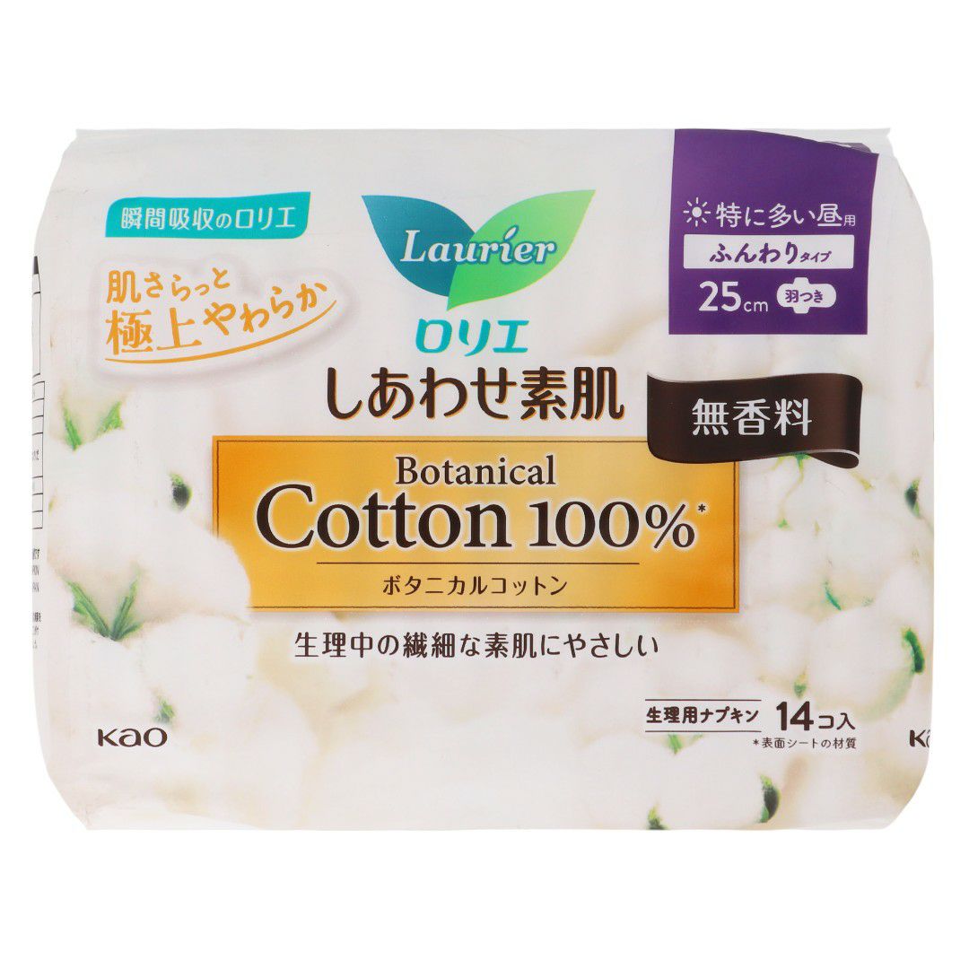 ロリエ しあわせ素肌 BOTANICAL COTTON100% 無香特に多い昼用羽つき 14個