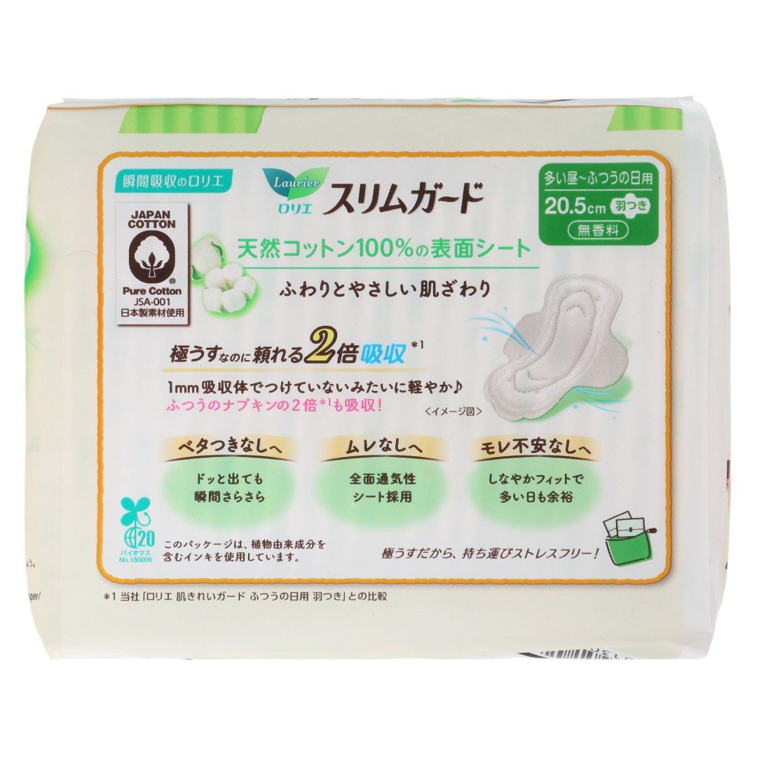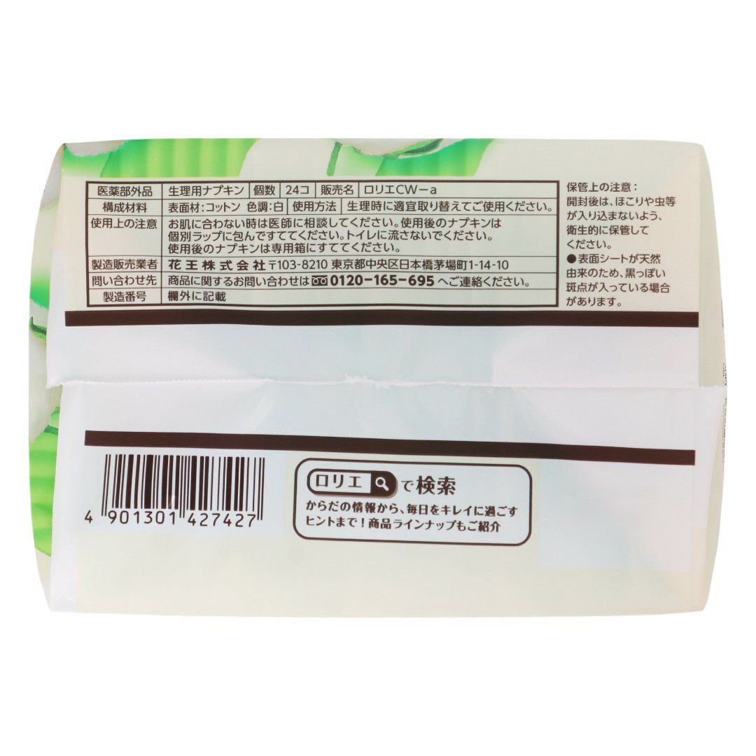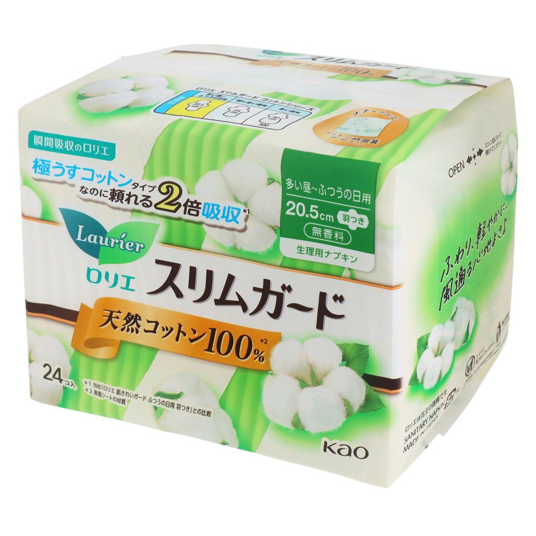 ロリエ スリムガード天然コットン100%多い昼~ふつうの日用羽つき 24個入