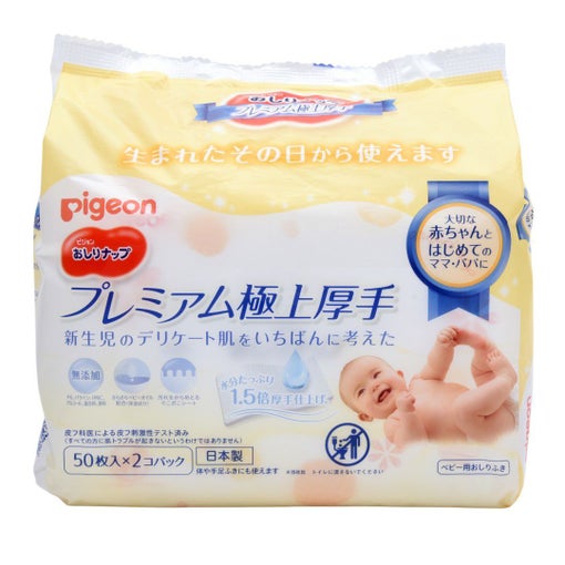やさしいふき心地にこだわったピジョンおしりナップシリーズ。なめらかで上質なふきごこち。新生児のデリケート肌をいちばんに考えたおしりナップ。