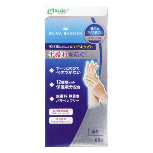 スキナバリアは独自のバリア処方で手肌を乾燥や外部刺激から守り、何度も繰り返しがちな手荒れ・ひび・あかぎれを防ぐ皮膚保護クリームです。有効成分酢酸取りフェロール・グリチルレチン酸ステアリルを配合し血行促進・消炎効果があります。シリコン・フッ素・PVP成分によりバリア膜を形成します。12種類の保湿成分も配合しています。