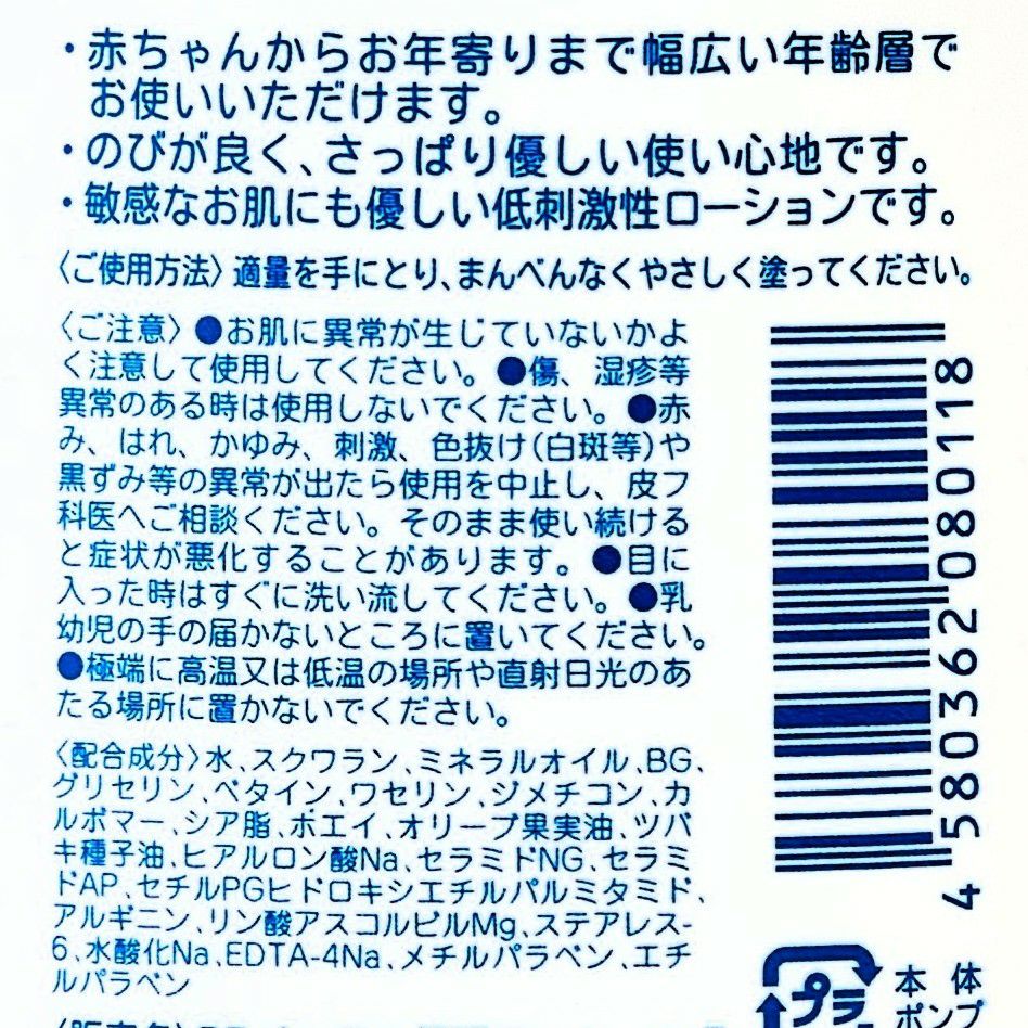 ミノン 全身保湿ミルクポンプ 400ml