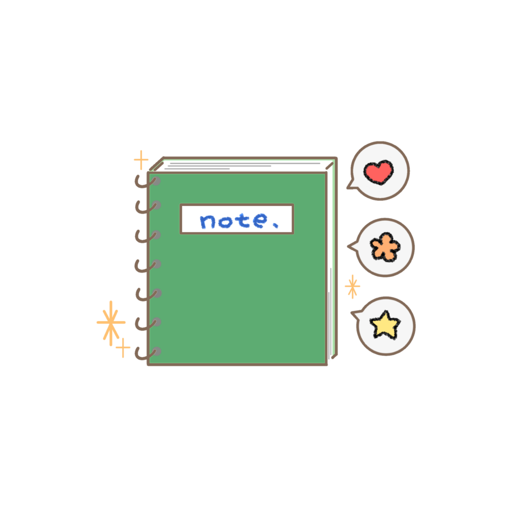 - 好きなノート何でも。感謝の言葉や前向きな言葉、救われる言葉等。ありがとうの人やモノの名前。食べたいモノ。行きたいところ。やりたいこと等を、入院中に書き、それが希望になりました。