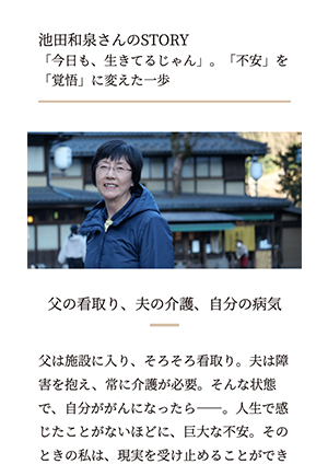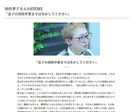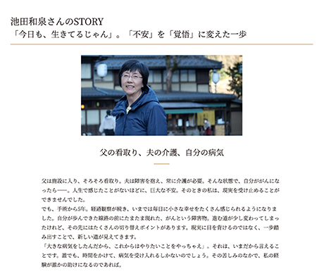 ストーリーでは、罹患経験者がどのようにして困難と向き合ったのか、また、どのような商品やサービスが生活を支えたのかを深掘りしています。